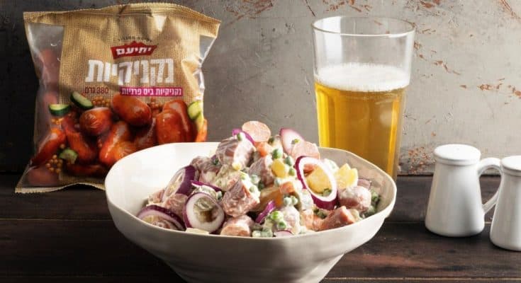 חברת "יחיעם" מגישה לרגל המצב מתכון למנה משפחתית, מנחמת ומשביעה: סלט תפוחי אדמה ונקניקיות פרגית.