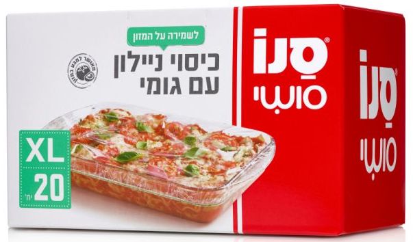 סנו סושי משיקה כיסוי ניילון עם גומי נצמד במידות XL ו- XXL, לכיסוי כלי פיירקס ותבניות תנור לשמירה על המזון בקלות ובנוחות.