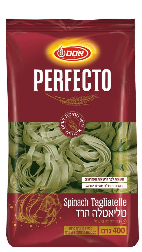 • טליאטלה תרד – (Spinach Tagliatelle) פסטה רחבה המשלבת תרד, באריזת 400 גרם. הפסטה מוסיפה צבע ירוק ומראה חגיגי למנות.