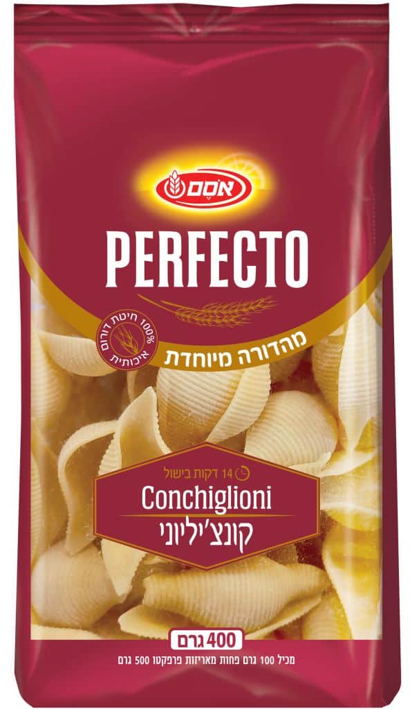 • קונצ'יליוני – (Conchiglioni) פסטה בצורת קונכיות ענקיות באריזת 400 גרם. צורה זו מותאמת במיוחד למילוי בגבינות, תרד או רטבים עשירים, ולאפייה והקרמה בתנור.