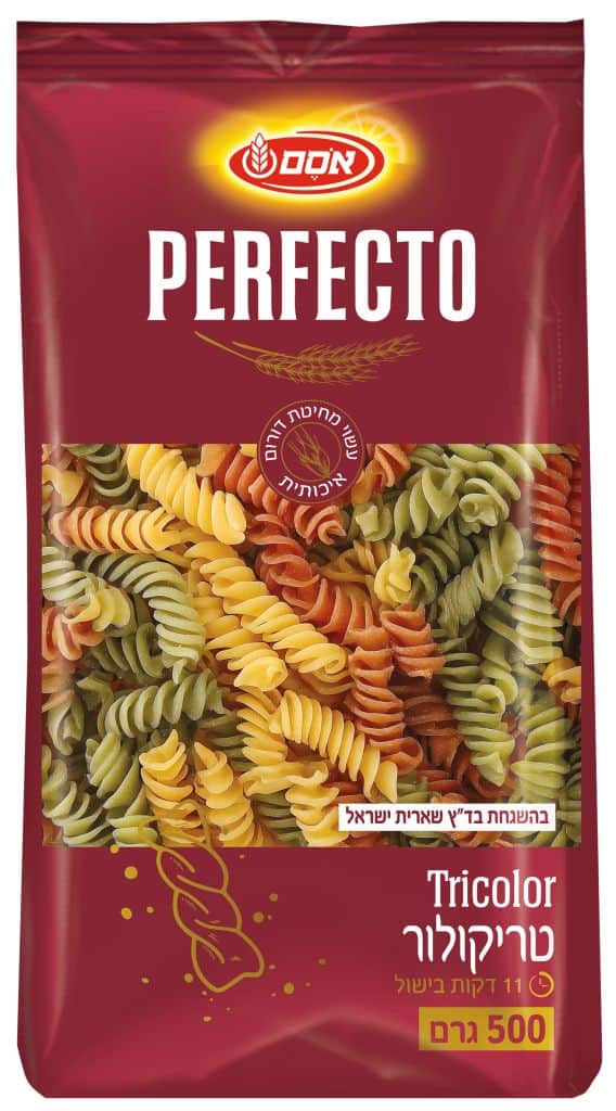 • ספירלי טריקולור – (Tricolor Spirali) פסטה ספירלית בשלושה צבעים, באריזת 500 גרם, המהווה פתרון קלאסי לתוספת צבעוניות וגיוון לשולחן האירוח.