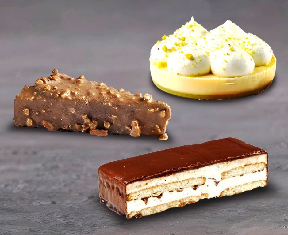 - עוגת ביסקוויטים – עם שכבות של ביסקוויטים, קרם וניל, שוקולד קראנצ'י, נוגט וגנאש שוקולד מריר