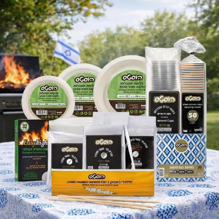 ארגון ארוחת “על האש” דורש לא מעט היערכות, החל מכלי ההגשה והאכילה ועד לאביזרים הנלווים להפעלת המנגל ולאירוח עצמו. החבילה נועדה לתת מענה מרוכז ונוח לצורך הזה, וכוללת מגוון רחב של מוצרים שנבחרו כך שיכסו את שלבי ההגשה, האירוח והתפעול. בין הפריטים שבמארז ניתן למצוא צלחות גדולות בקוטר 26 ס"מ, צלחות קטנות בקוטר 17 ס"מ ומרקיות, כולן עשויות מקנה סוכר טבעי מתכלה וידידותי לסביבה, כאשר כל אחד מהמוצרים מגיע במארז של 25 יחידות. לצדן מצורפים גם כלי סכו"ם חד פעמיים מהודרים ואיכותיים, סכינים, מזלגות וכפיות, 50 יחידות בכל מארז.
