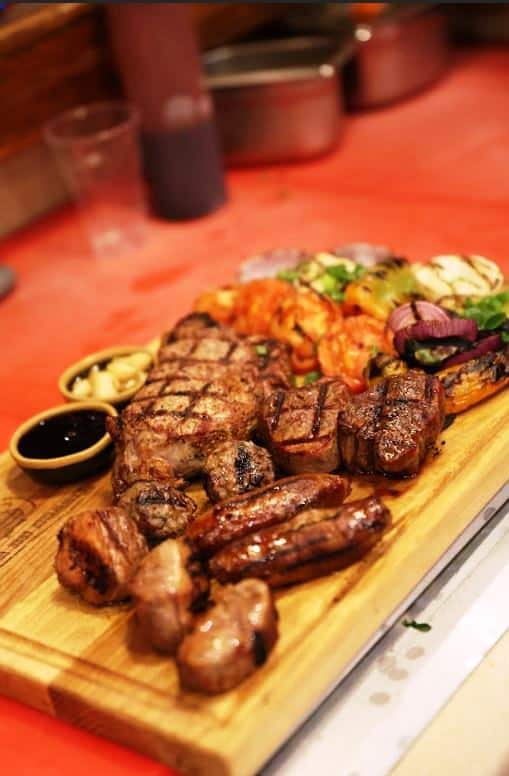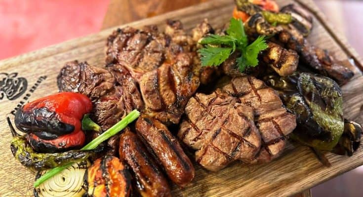 המסעדה מציעה מגש זוגי במשקל קילו עם בשר איכותי הישר מהגריל ושתי כוסות יין.
