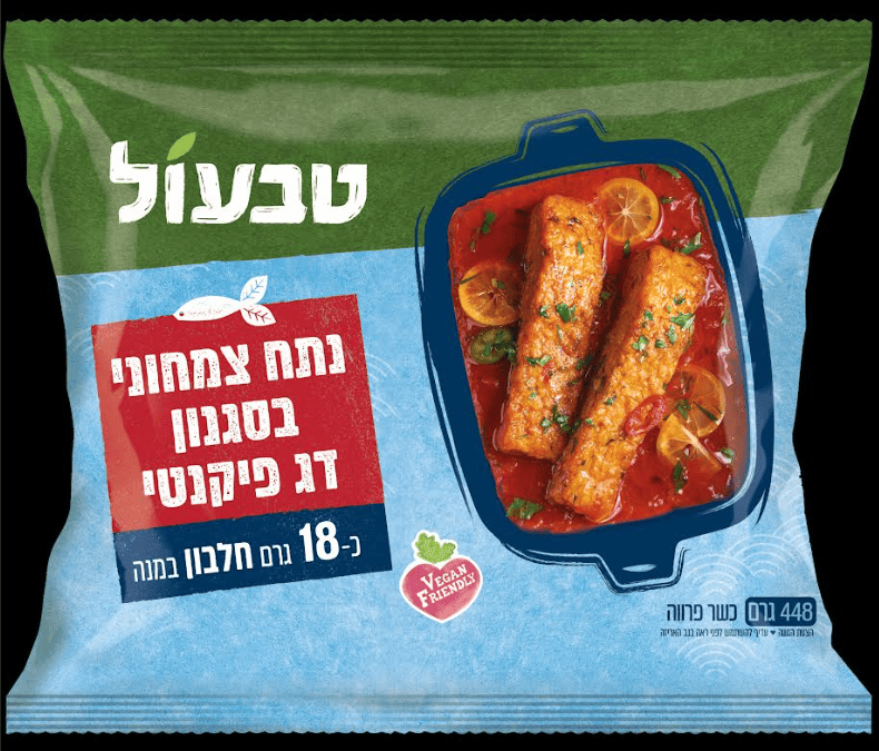 *  טבעול נתח צמחוני בסגנון דג פיקנטי – פילה דג טבעוני בסגנון מרוקאי (תכולה: 448 גרם).