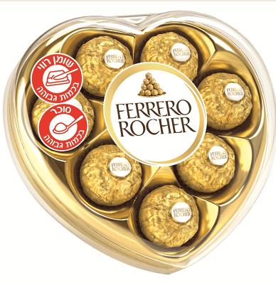 * פררו רושה: אריזת לב מוזהבת עם 8 יחידות (100 גרם).