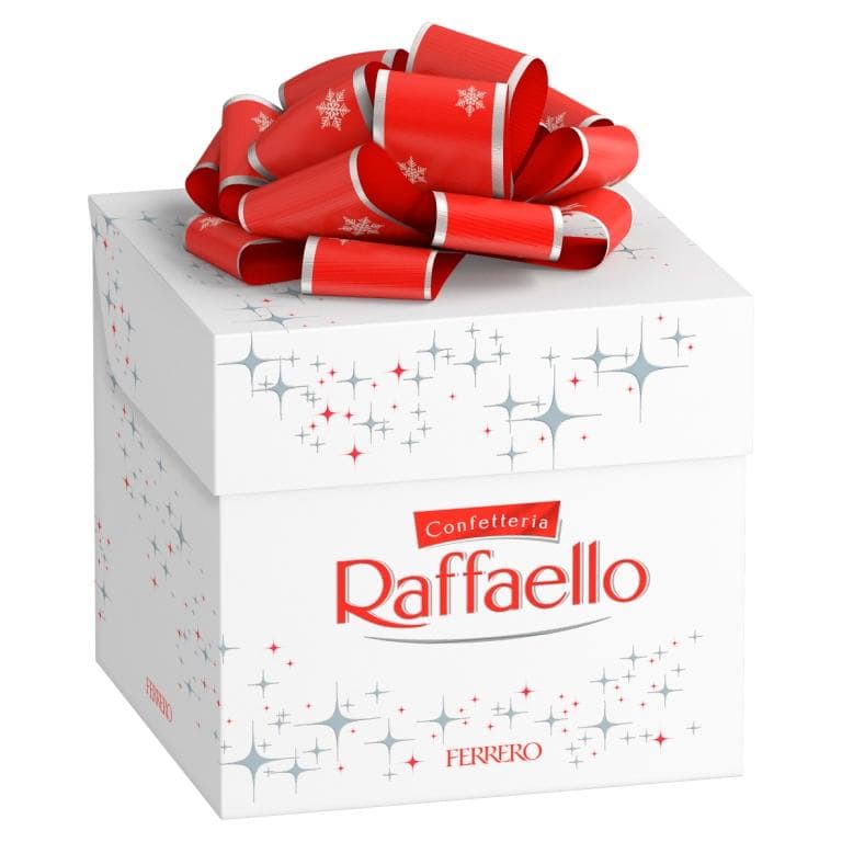 * רפאלו: אריזה אלגנטית עם 7 יחידות (70 גרם), המעוטרת בסרט אדום יוקרתי.