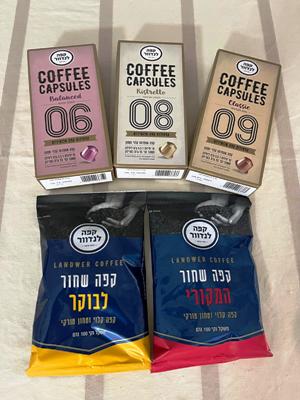 סדרת קפסולות וקפה שחור של "קפה לנדוור" במגוון טעמים ואיכויות.