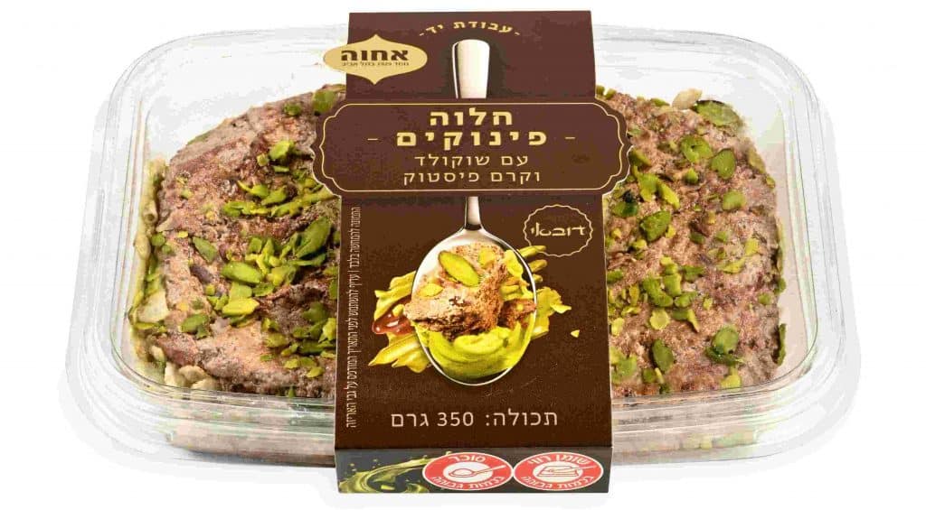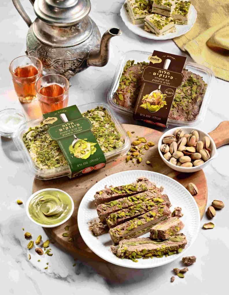 חלוה פינוקים עם קרם פיסטוק ושברי פיסטוק של חברת אחוה – צילום: יעל האן